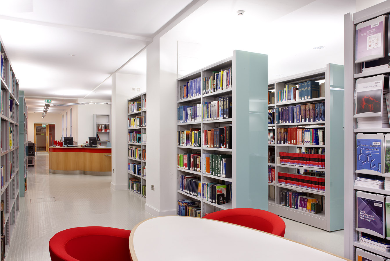 Example: The Library at the School of Pharmacy, University of London. In 2008 we were asked to design a new library for the School of Pharmacy at London University, working within an existing building. So we put these observations into practice. The brief called for separate zones: